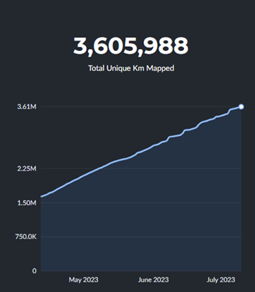 Global map coverage is the foundation upon which Hivemapper needs to build for long term success. To compete with the centralized tech offerings, Hivemapper must have just as much if not more coverage. Since launching in November ’22, Hivemapper’s network has grown dramatically with coverage across 3.6 million unique road kilometers. For reference, it took Google Maps 12 years to collect 16 million km. If unique road coverage continues to grow at its current pace, Hivemapper could reach 10 million km by 2024.